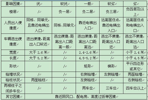 偶爾還有少量車位,可能涉及有靠近應(yīng)風(fēng)口、配電房等不利因素,以及地下車位偶爾有高度較矮等情況,可作為其它因素進(jìn)行適當(dāng)修正。