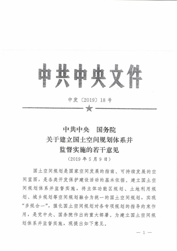 中共中央 國務院關于建立國土空間規(guī)劃體系并監(jiān)督實施的若干意見(中發(fā)【2019】18號) 2019-05-21 11:36:07    4135     網絡