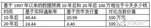整體而言,無論是真實通貨膨脹率還是貨幣發(fā)行速度,都已經大大降低。我根據中國人民銀行公布的數據,計算出來1997年以來中國的廣義貨幣供應量的年增長率約為16.9%,中國真實的年通貨膨脹率約在7.3%?;谶@一數據,我們再次可以預測現在的100萬元,10年后和20年后分別相當于今天的多少錢。