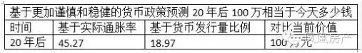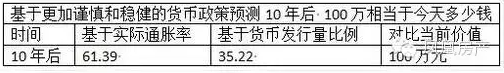 1980年到今天,34年時間里,中國的廣義貨幣供應量的年增長率約為22.45%,中國真實的年通貨膨脹率約在11.9%——如果按照這個數據計算,我們大致可以算出兩種模式下現在的100萬元,10年后和20年后分別相當于今天的多少錢。