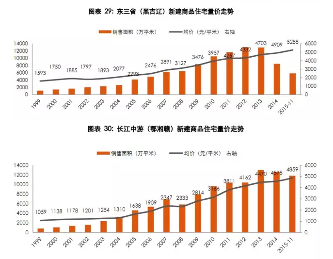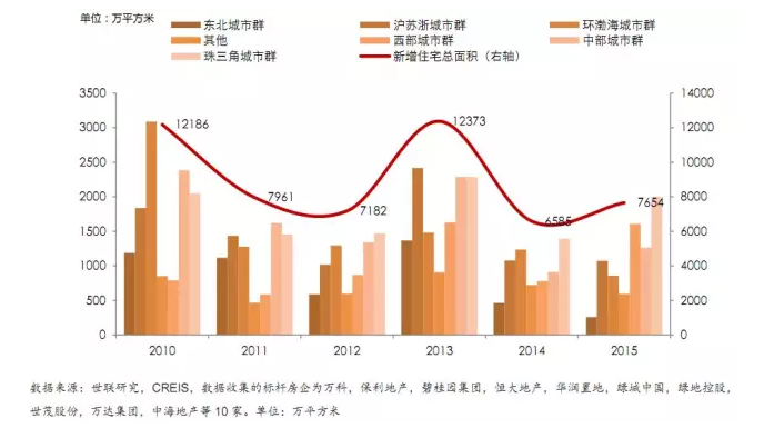 2015 年是銷量創(chuàng)新高之年,在創(chuàng)新高的背后,是區(qū)域性的分化,其量價分化明顯,經(jīng)濟發(fā)達的城市群市場表現(xiàn)良好,反之,經(jīng)濟較差的城市群則表現(xiàn)不良,易導致市場走入困境。
