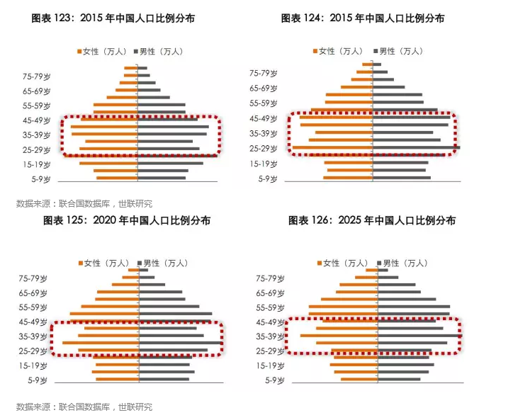 根據(jù) UNdata(聯(lián)合國數(shù)據(jù)庫)對中國人口年齡結構的統(tǒng)計及測算,2015 年、2020 年、2025 年,中國 25-34 歲的人口(即首置型購房者集中的人群)分別占總人口比例為17.3%、17.3%、13.6%,整體呈現(xiàn)下行趨勢。而 35-49 歲的人口(即改善型購房者集中的人群)在2015年、2020年、2025 年均達到3.1億以上,占總人口的比例保持在23%的高位,表明未來10年,中國房地產(chǎn)改善型置業(yè)市場容量將會持續(xù)放大。