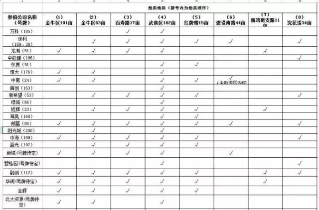 萬科、保利、龍湖、中鐵建、東原、恒大、中南、首創(chuàng)、新希望、綠城、旭輝、海亮、朗基、陽光城、中海、藍光、新城、碧桂園、融創(chuàng)、華潤、金輝、北大資源……幾乎所有主流房企都齊集,今天進行的8宗主城區(qū)地塊,成為今年以來最受關注的一場土拍,數(shù)量多,總價、單價個個都份量足。
