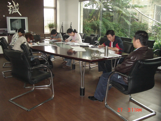 大成公司評估部內(nèi)部考核制度于十月底在公司總部會議室順利舉行。此次考核分為兩個板塊,即:筆試和自由答辯。筆試,指公司員工在規(guī)定時間內(nèi)完成試卷的作答;自由答辯,指公司員工接受以董事長、總經(jīng)理牽頭,公司副總、部門經(jīng)理及指導(dǎo)老師的提問,并作以答辯。