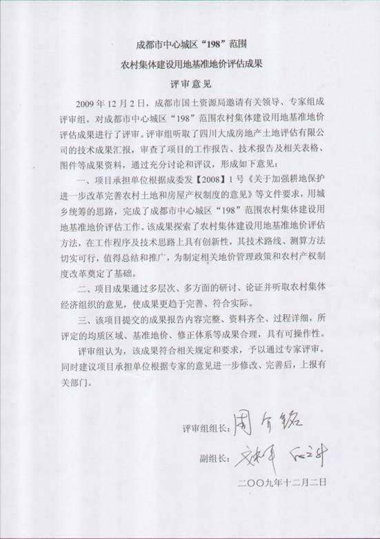 成都市中心城區(qū)“198”范圍農(nóng)村集體建設(shè)用地基準地價評估項目通過驗收