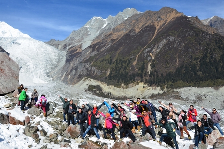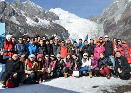 會后第二天,全體員工游覽了海螺溝風(fēng)景區(qū)。海螺溝冰川是中國境內(nèi)唯一的海洋性冰川,也是亞洲海拔最低、規(guī)模最大的海洋性現(xiàn)代冰川。讓人稱奇的還是雪谷溫泉,身邊一片白雪皚皚,露天溫泉池的蒸汽滾滾騰空,沐浴在海螺溝溫泉里,身體宛如天上漂浮的暖云,能深切感受到來自海螺溝冰川地底的熱力。