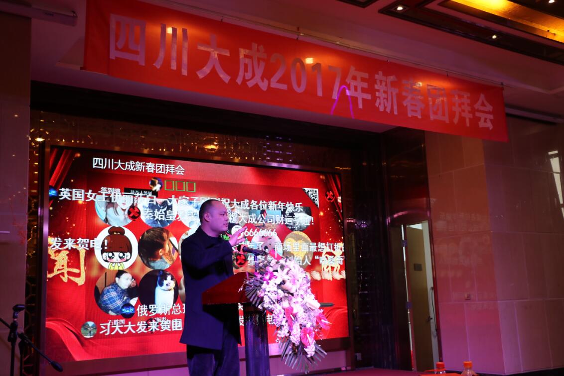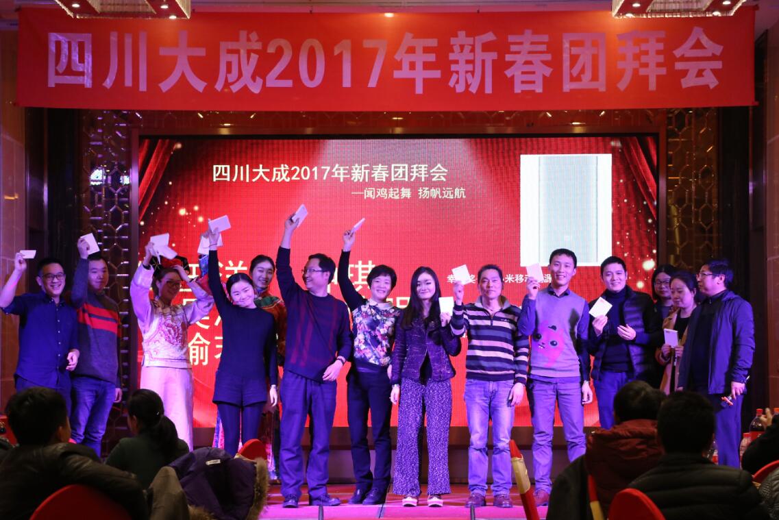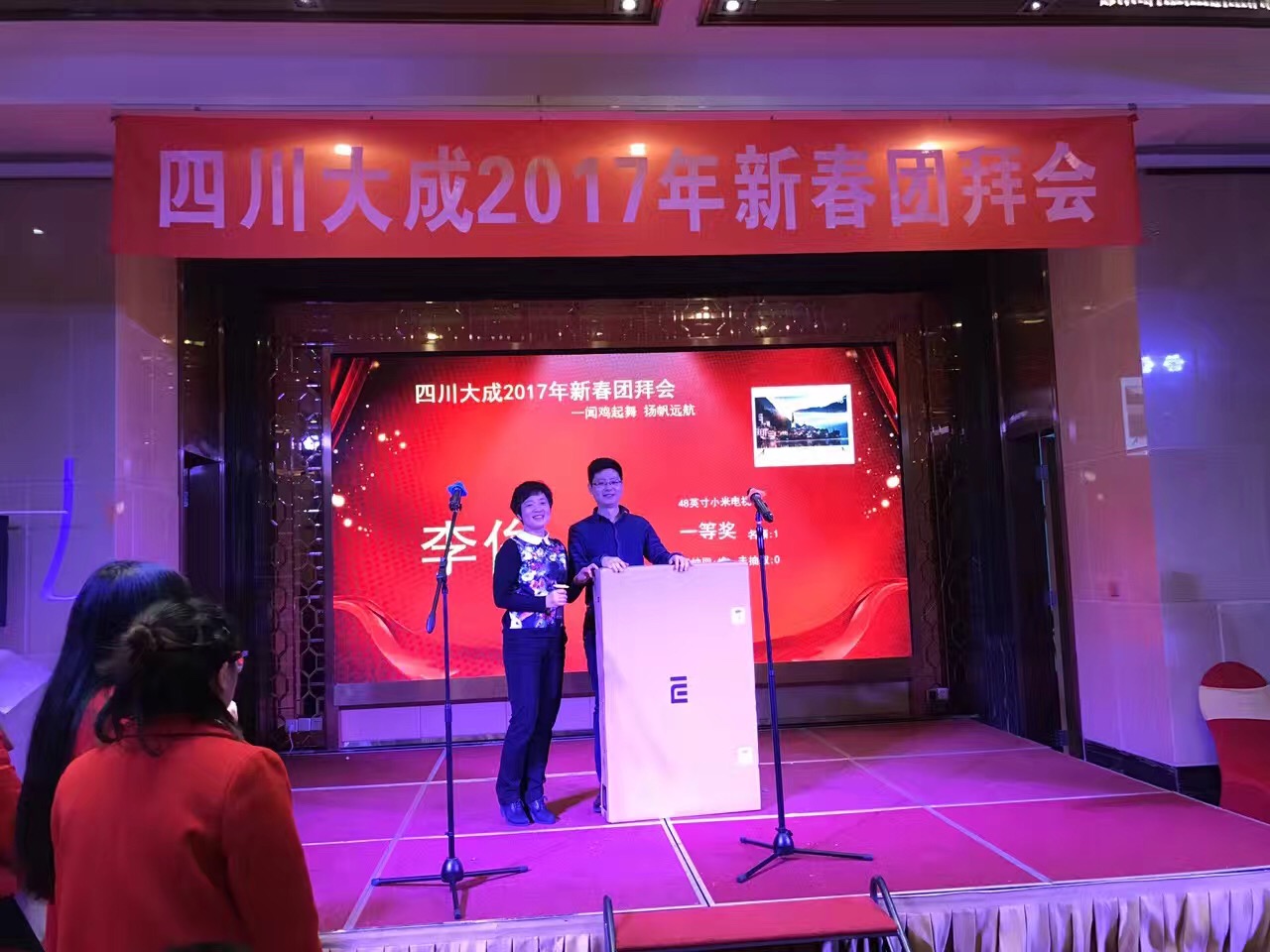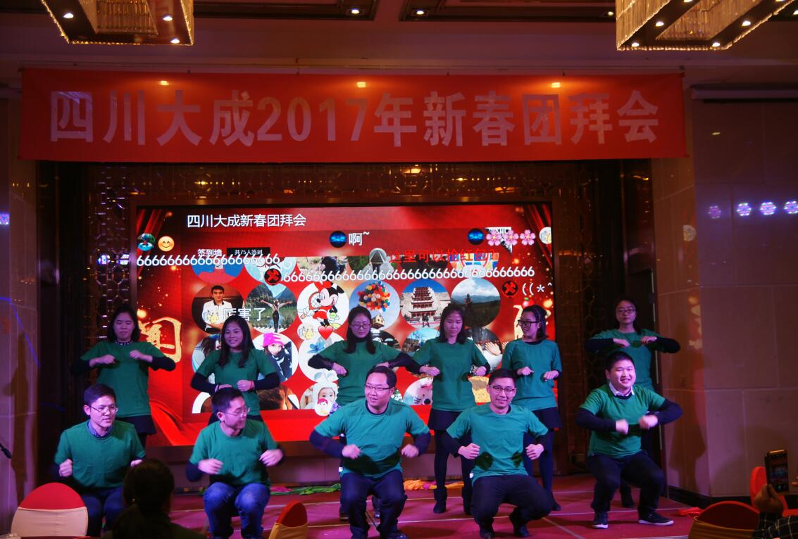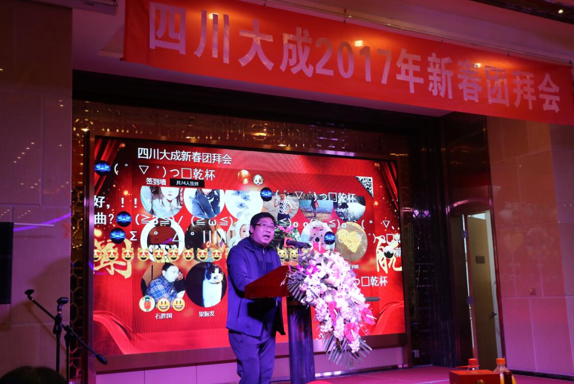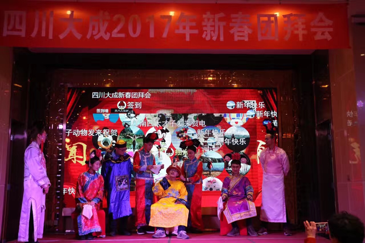 2017年1月24日,以“聞雞起舞·揚(yáng)帆遠(yuǎn)航”為主題的四川大成2017年新春團(tuán)拜會在林恩國際酒店隆重召開。公司全體員工與公司領(lǐng)導(dǎo)歡聚一堂,共度聯(lián)歡,會場內(nèi)喜氣洋洋、暖意融融。
