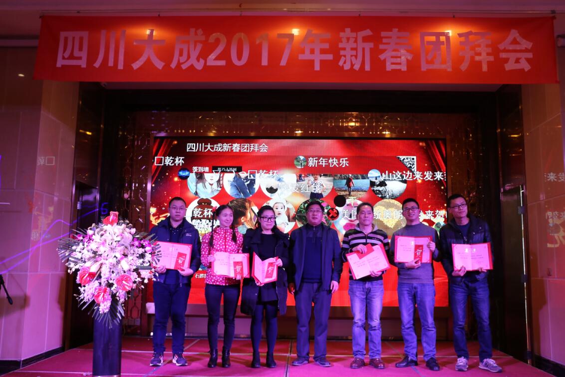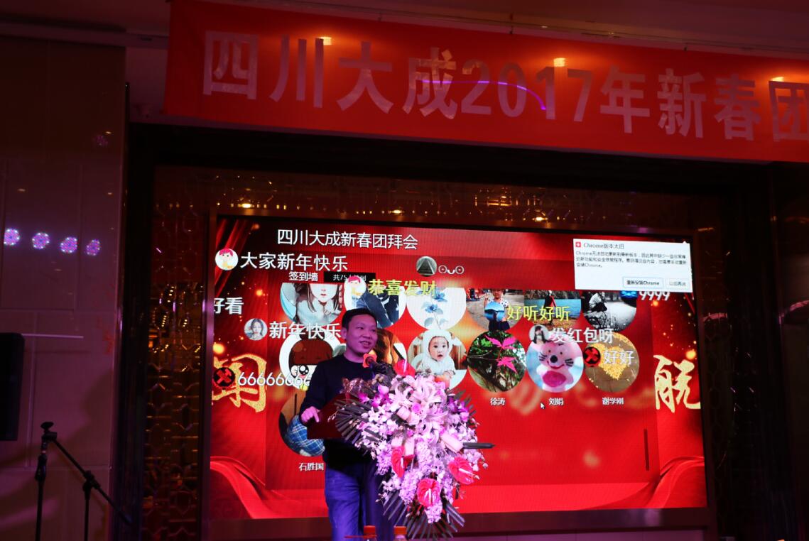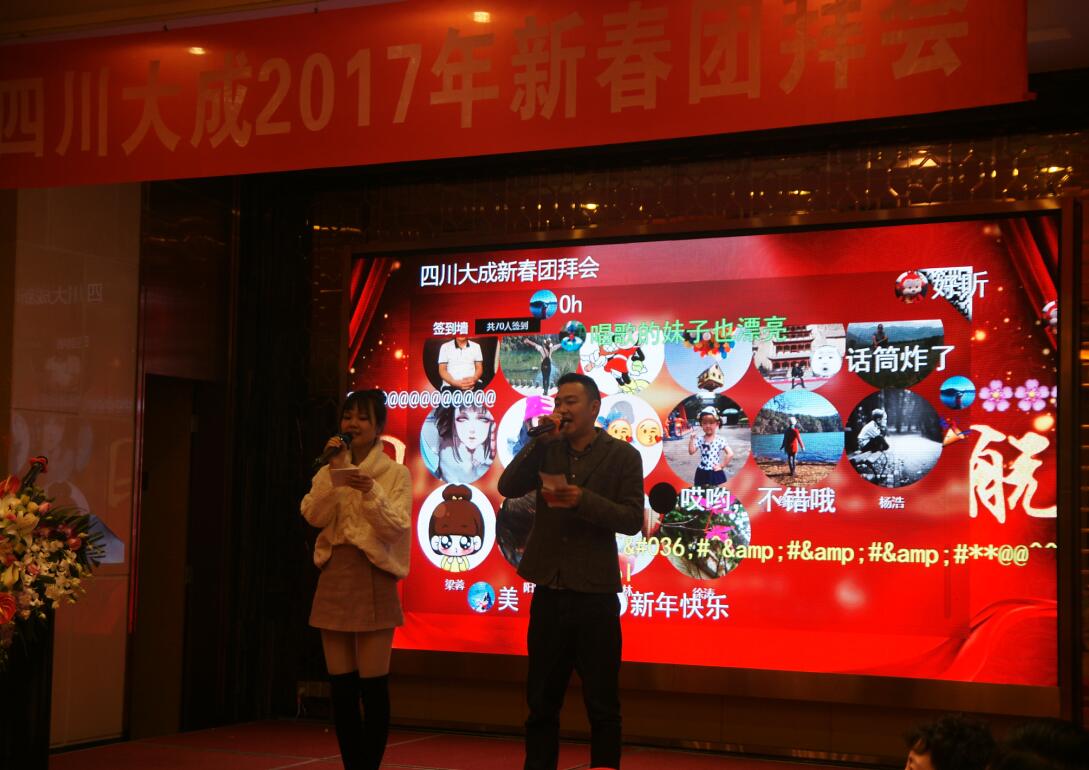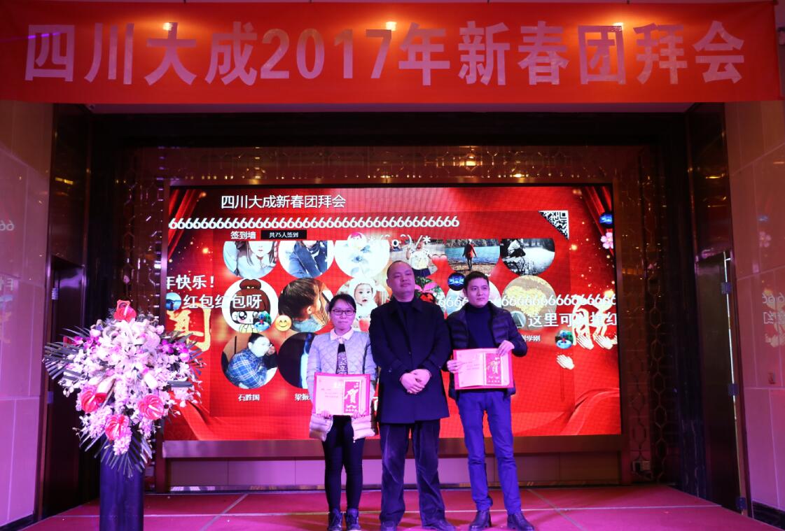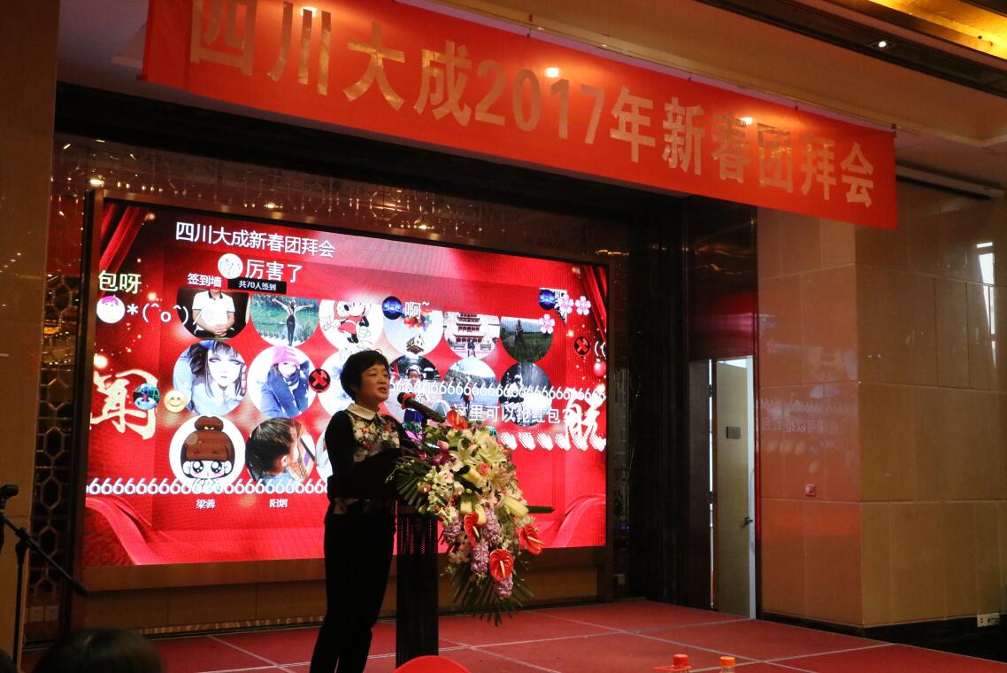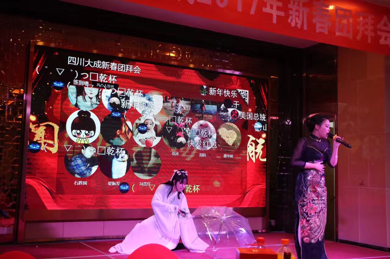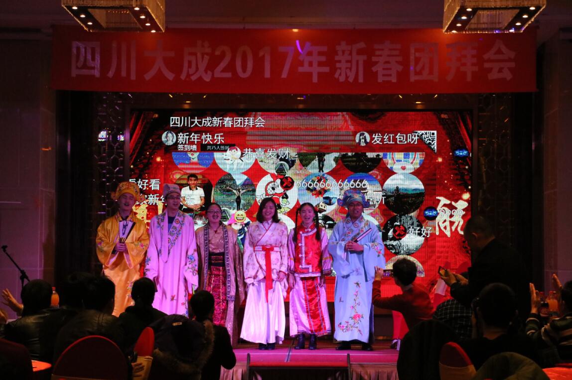 2017年1月24日,以“聞雞起舞·揚(yáng)帆遠(yuǎn)航”為主題的四川大成2017年新春團(tuán)拜會在林恩國際酒店隆重召開。公司全體員工與公司領(lǐng)導(dǎo)歡聚一堂,共度聯(lián)歡,會場內(nèi)喜氣洋洋、暖意融融。