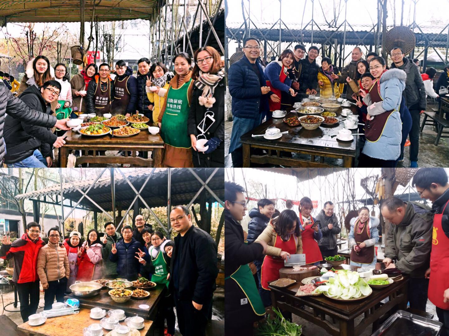 教練將我們隨機(jī)分為8個(gè)小組,每組10-11人,分別前往8個(gè)灶臺(tái)開(kāi)始做飯。提供的食材均是半成品,品種豐富多樣,有雞、鴨、兔、魚(yú)、豬肉,土豆、芹菜、萵筍等等。在每組組長(zhǎng)的帶領(lǐng)下,大家分工明確,有的生火,有的洗菜、切菜,有的炒菜,有的配合打雜。經(jīng)過(guò)1個(gè)多小時(shí)的奮戰(zhàn),一道道美味上桌了。此時(shí)雪已經(jīng)停了,氣溫逐步上升,身上早已沒(méi)有了初來(lái)時(shí)的寒冷,更多的是食物的芳香和熱情四溢的激動(dòng)。大家感受著自己親手做的美食,覺(jué)得比專(zhuān)業(yè)廚師做的更加美味,正所謂幸福是自己親手奮斗出來(lái)的。大家的分工合作也讓不同部門(mén)同事之間更加團(tuán)結(jié),新同事與老員工之間相互認(rèn)識(shí)更加深刻。