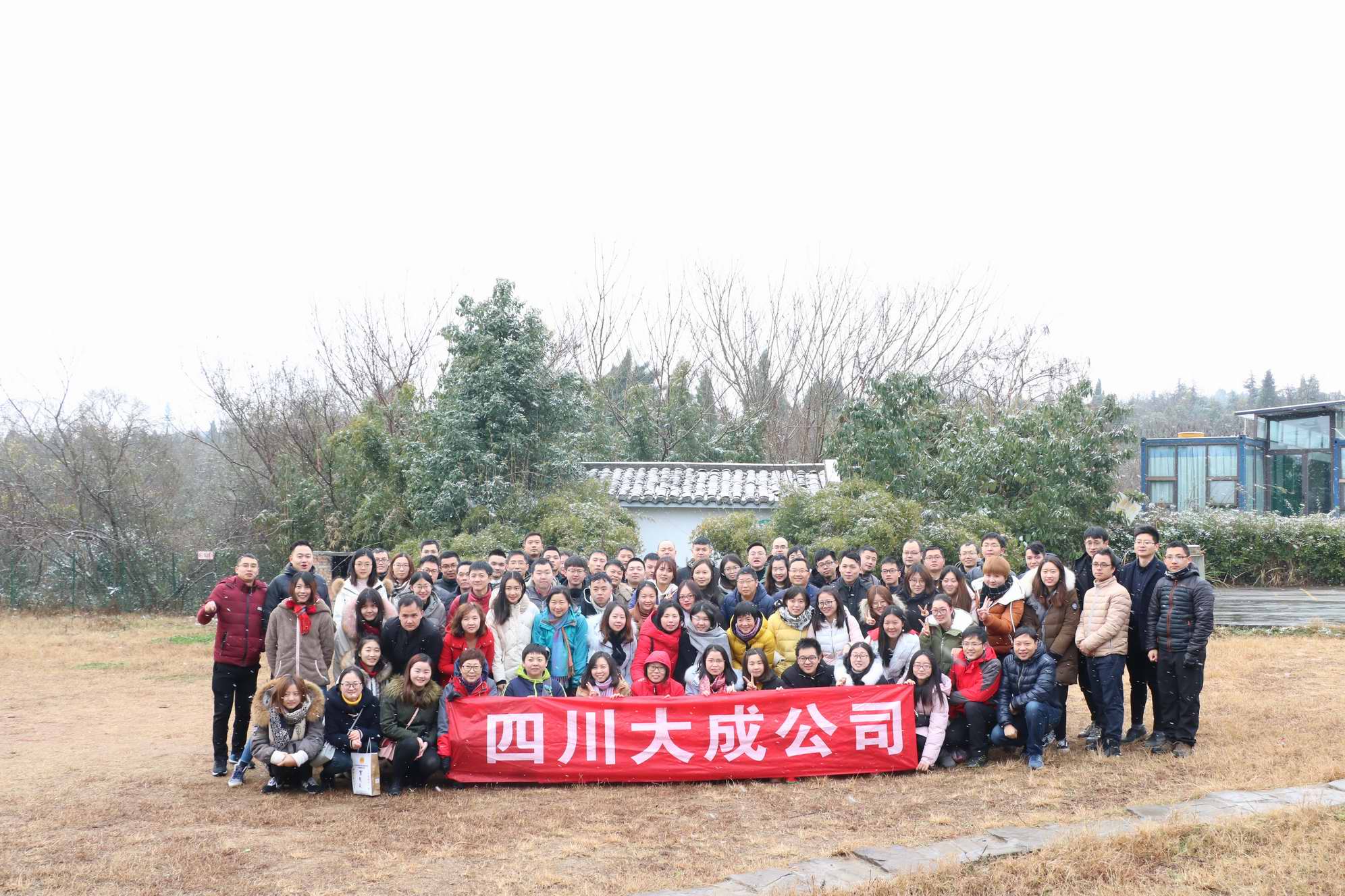 2018年1月27日早上八點(diǎn)準(zhǔn)時(shí)在公司樓下集合。上午十時(shí)許,載著85名大成人的兩輛大巴車(chē)順利達(dá)到此次目的地之一的德陽(yáng)白馬關(guān)樂(lè)途野戰(zhàn)俱樂(lè)部進(jìn)行一天的戶(hù)外拓展活動(dòng)。當(dāng)時(shí)白馬關(guān)氣溫零下三度,雪花紛飛,我們?cè)诮叹毜膸ьI(lǐng)下開(kāi)始集合喊口號(hào),隨即進(jìn)行此次戶(hù)外拓展的第一個(gè)項(xiàng)目——自助廚房。