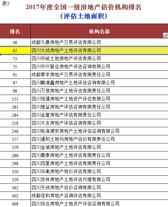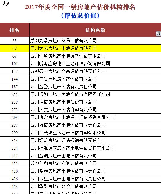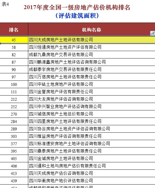 公司獲2017年度全國一級資質(zhì)房地產(chǎn)估價機構(gòu)業(yè)績排名四川三甲