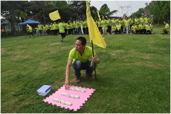 起好了隊(duì)名,唱完了隊(duì)歌,展示完各隊(duì)的雄風(fēng)后,我們開始了第一輪的PK游戲“破譯密碼”。相信愛(ài)打麻將的四川人對(duì)“筒條萬(wàn)”一定再熟悉不過(guò)了,但這場(chǎng)游戲中可不是麻將老手就能穩(wěn)贏的,必須足夠機(jī)智有條不紊,而且還得拼體力搶速度。各隊(duì)接到指令后迅速展開討論制定方案,然而做游戲是融入集體的一個(gè)好方法,平時(shí)看似內(nèi)向的同事在活動(dòng)中積極出謀劃策,展現(xiàn)了生活中的另一面,最后經(jīng)過(guò)一番激烈戰(zhàn)斗“大成隊(duì)”在第一輪中獲勝。