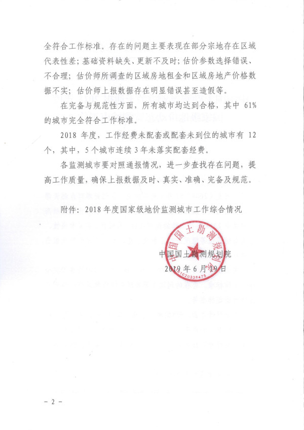 我司承擔(dān)的2018年成都市地價(jià)動(dòng)態(tài)監(jiān)測(cè)工作排名全國(guó)第九