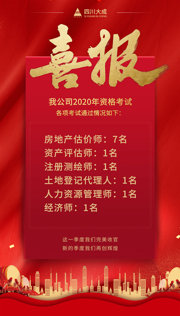 2020年12月底,隨著各項(xiàng)執(zhí)業(yè)考試、職業(yè)考試、專業(yè)資格考試成績(jī)的出爐,我公司再次取得了不菲的成績(jī),各項(xiàng)考試通過(guò)情況如下:
