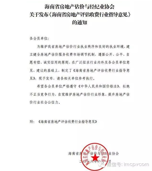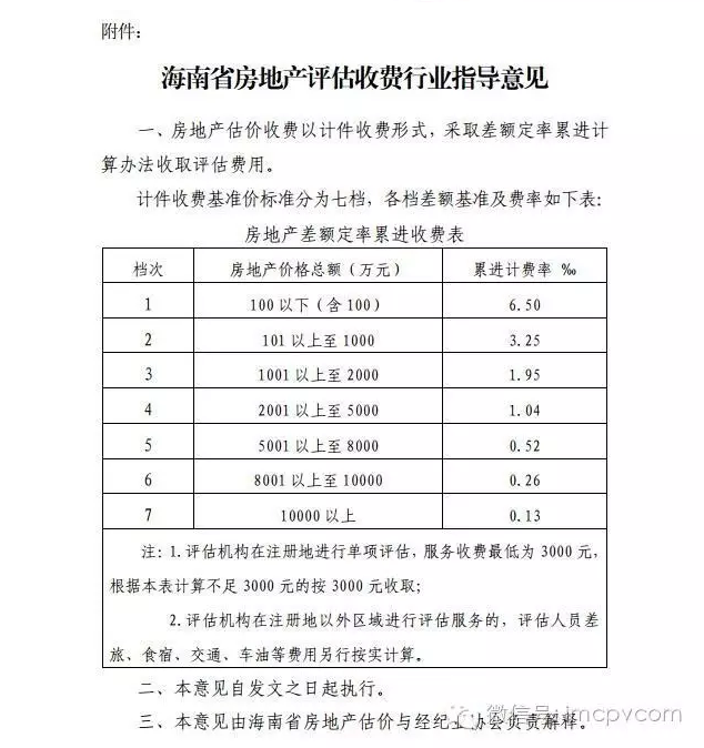 海南省房地產(chǎn)評(píng)估收費(fèi)行業(yè)指導(dǎo)意見(jiàn)