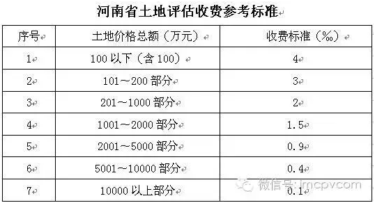 河南省土地評(píng)估收費(fèi)參考標(biāo)準(zhǔn)
