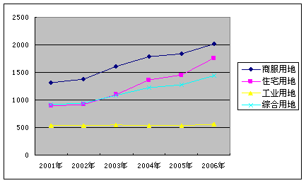 (一)2001-2006年城市地價水平變化趨勢