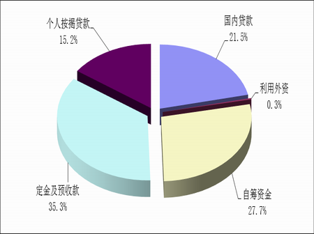 2. 自籌資金、定金及預(yù)付款為開發(fā)企業(yè)主要資金來源