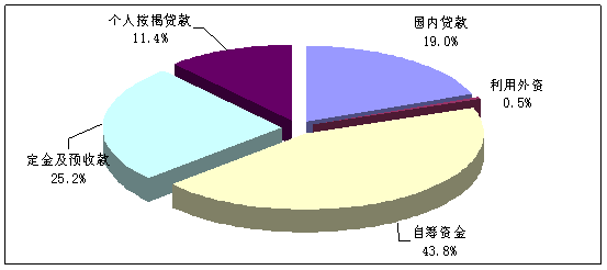 2014年1-9月,房地產(chǎn)開發(fā)企業(yè)到位資金89869億元,同比增長2.3%,增速較去年平均增長率30.09%下降較多,今年同比增幅持續(xù)下降且明顯低于去年。從資金來源的分布結(jié)構(gòu)看,自籌資金和定金及預(yù)付款占資金來源比例接近7成,為開發(fā)企業(yè)主要資金來源渠道。2014年第三季度,除利用外資為本年度首次出現(xiàn)正增長趨勢外,其余各資金來源渠道增長率均處于下降通道。其中國內(nèi)貸款、利用外資和自籌資金為正增長,但增長幅度有所下滑,其余資金來源均出現(xiàn)負(fù)增長。詳見圖