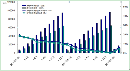 2016年1-3月,全國固定資產(chǎn)投資(不含農(nóng)戶)85843億元,同比名義增長10.7 %,增速與1-2月份相比略有回升,上漲0.5個(gè)百分點(diǎn)。房地產(chǎn)開發(fā)投資17677億元,同比名義增長6.2%,增速比1-2月份上升3.2個(gè)百分點(diǎn)。其中,住宅投資11670億元,增長4.6%,增速上升2.8個(gè)百分點(diǎn),占房地產(chǎn)開發(fā)投資的比重為66%。