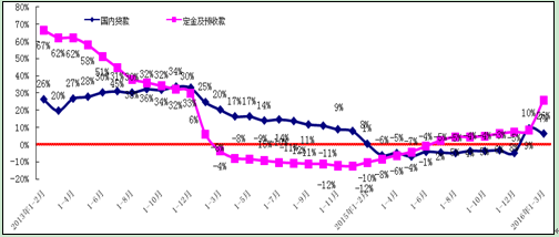 2016年1-3月,房地產(chǎn)開發(fā)企業(yè)到位資金31992億元,同比增長14.7%,增速較上季度明顯有所回升,整體來看呈現(xiàn)企穩(wěn)回暖的趨勢。