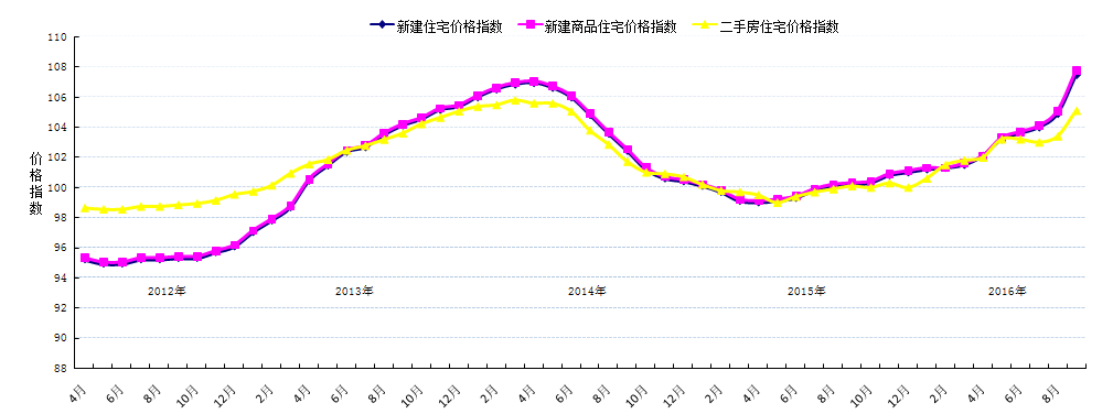圖3-1-6:2011年4月-2016年9月成都住宅分類(lèi)價(jià)格指數(shù)比較圖