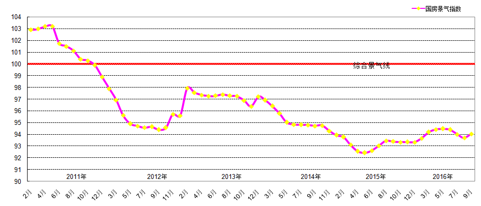 綜上所述,2016年第三季度,經(jīng)濟(jì)增速保持穩(wěn)定,國(guó)家經(jīng)濟(jì)增長(zhǎng)緩中趨穩(wěn),固定資產(chǎn)投資及房地產(chǎn)開(kāi)發(fā)投資增速基本保持穩(wěn)定。在全國(guó)房地產(chǎn)市場(chǎng)運(yùn)行整體穩(wěn)健,一、二線(xiàn)部分城市房地產(chǎn)市場(chǎng)火熱的背景下,部分市場(chǎng)火熱的城市紛紛出臺(tái)政策,抑制房地產(chǎn)市場(chǎng)過(guò)快過(guò)熱發(fā)展,但平穩(wěn)發(fā)展與去庫(kù)存仍然是房地產(chǎn)市場(chǎng)的主流。在此背景下,國(guó)房景氣指數(shù)在2016年三季度整體略有下滑。