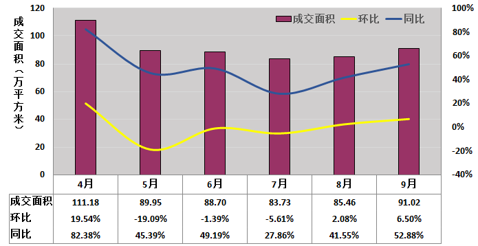 新建商品住宅成交量方面,7月份成交量較6月份有小幅回落,8月份成交量略有上漲,受樓市傳統(tǒng)“金九銀十”的影響,9月份成交量有所上漲。總體看本季度成都市新建商品住宅成交量略有減少。