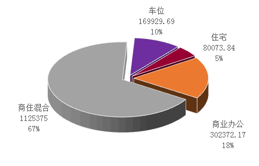 圖3-1-2:2017年第一季度一圈層新建商品房用途供應(yīng)量圖
