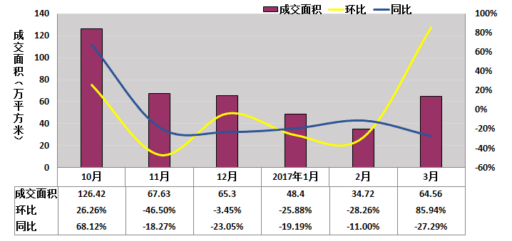 圖3-1-3:2016年10月-2017年3月一圈層新建商品住宅成交量圖