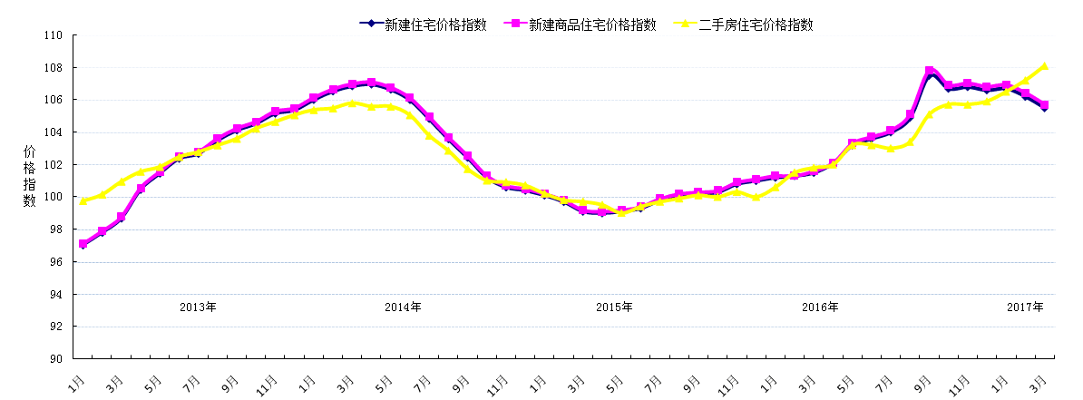 圖3-1-6:2013年1月-2017年3月成都住宅分類價(jià)格指數(shù)比較圖