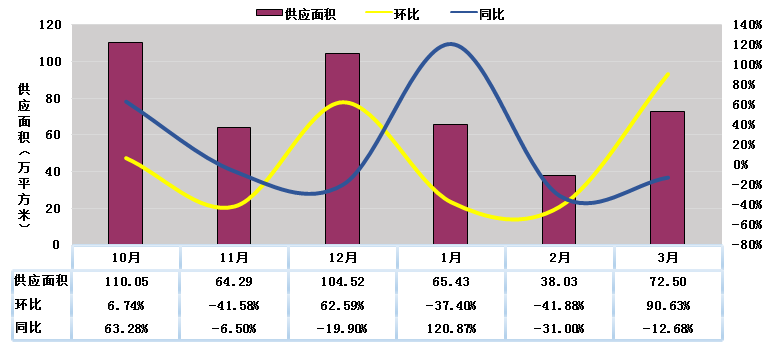 圖3-1-1:2017年10月-2018年3月一圈層新建商品房供應(yīng)量比較圖