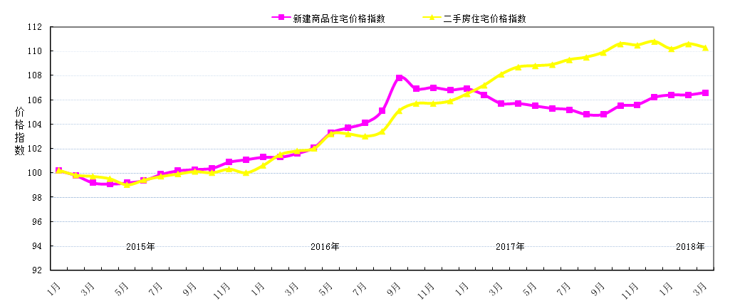 圖3-1-5:2014年1月-2018年3月成都住宅分類(lèi)價(jià)格指數(shù)比較圖